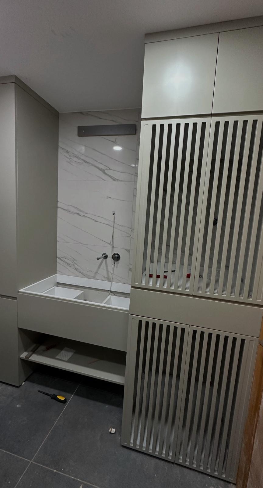 Küçük banyolarda alanı en verimli şekilde kullanan dolaplar, geniş banyolarda ise şıklığı tamamlayan büyük depolama çözümleri üretilir. Böylece hem estetik hem de pratik kullanım bir arada sunulur.